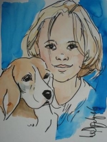 U kunt mij bestellen om cartoons van honden met hun baasjes te laten schilderen.