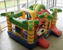 Dit is een leuk combi Springkussen met Glijbaan geheel in het thema Jungle. Het kussen