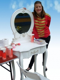Deze schminkstand is te boeken voor ieder feest en elk denkbaar evenement. Prijs op aanvraag.
