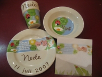 Trefwoorden: geboorteservies, babyservies,mok, bord, tegel, bord, bedankje, kraamkado,