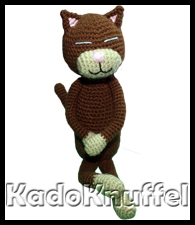 Omschrijving: Samuel is een kat die gebaseerd is op het Amineko patroon, hierdoor is hij heel flexibel en kan hij op veel manieren gepositioneerd worden. Hij is heel erg zacht en heerlijk om mee te knuffellen. Hij is bruin van kleur met creme kleurige handen, voeten en snuit.