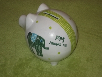Spaarvarken beschilderd met naam / geboortekaartje