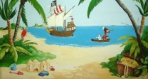 Dit is apart! Een unieke muurschildering van piraten voor de kinderkamer! In de speelhoek of op die lege plek op de muur!!!