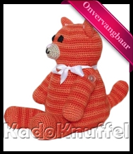 Omschrijving: Jason is een oranje kat met een witte strik om zijn nek, hij is gemaakt van acryl wol. De armen zijn beweegbaar omdat ze met een knoop op het lichaam zijn vast gezet. Voor 8 jaar en ouder.