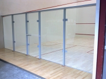 Glazen squashachterwand met glazen stabilisatorsysteem.95 II en 95 IV.