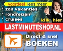 Boek nu uw vakantie online op www.LastminuteShop.nl en ontvang Eur 15,- korting op uw boeking !